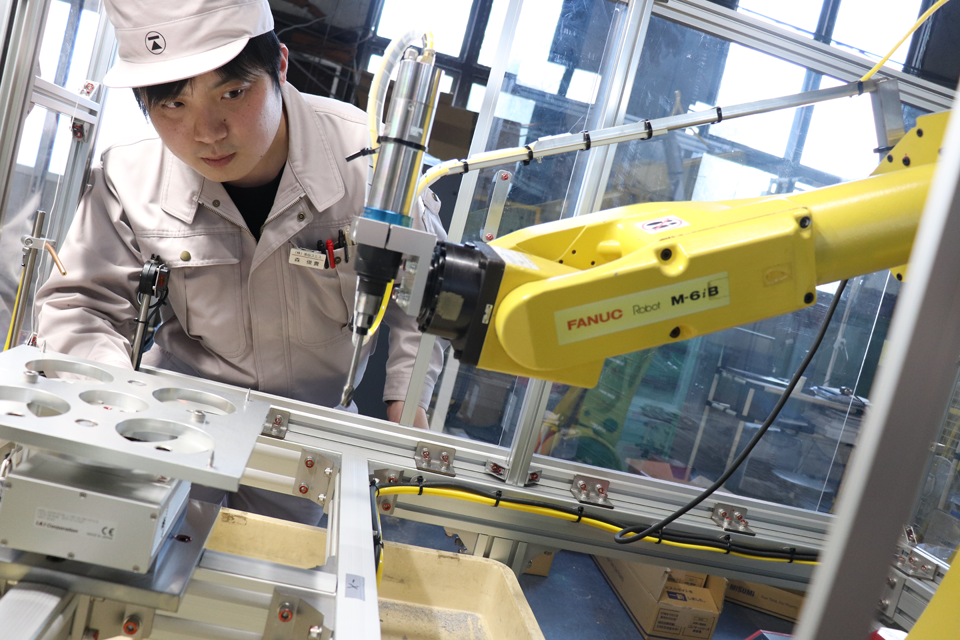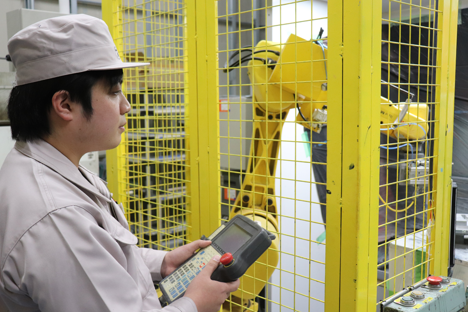 入社2年目で、自社ブランドの開発に携われたことが印象に残っています。自社製品をロボットで塗装するプログラムを組んでいたのですが、角度によっては難しくて均等にならず、何度も試行錯誤を重ねました。ムラがあっても、分厚くなってもNG。さまざまな条件を加味し、動きやスピードを変更しながら微調整しました。塗装の知識は全くなく、先輩に教えてもらいながらでしたが、完成した時の喜びはひとしおでしたね。期日がある中で焦りがなかったと言えば嘘になりますが、新しいことへの挑戦は、自身の成長も明確に感じられモチベーションが下がることはありませんでした。現在は、電気工事士の資格取得に向けて勉強中。常にたくさんの気付きを与えてくださる憧れの先輩方に少しでも近付けるよう、さらに経験を積んでレベルアップを目指したいです。
